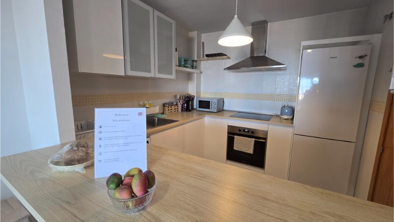 La cocina está abierta hacia el salón y está totalmente equipada (todos los electrodomésticos son nuevos). Hay un dormitorio con una cama amplia de matrimonio y el otro tiene dos camas individuales.