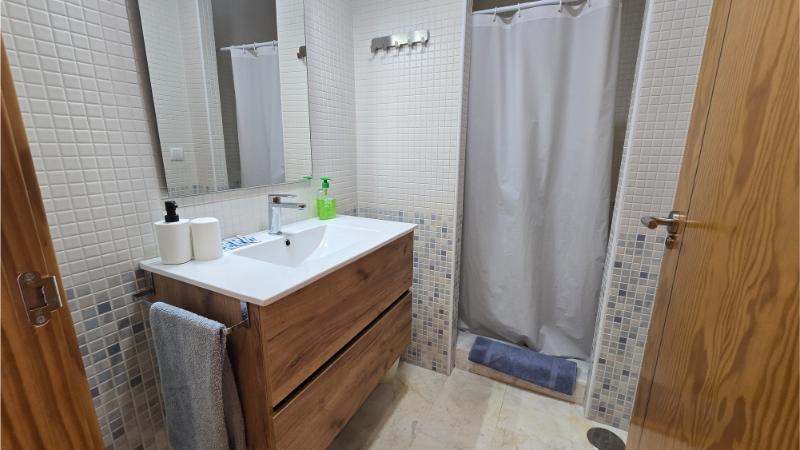 Está situada un nivel por debajo del bloque (acceso mediante escaleras), en un entorno tranquilo y bien cuidado. También cuenta con acceso directo a la playa desde la parte baja de la urbanización. El paseo hasta la playa es agradable; el regreso incluye una subida, algo a tener en cuenta, especialmente en las horas de más calor.